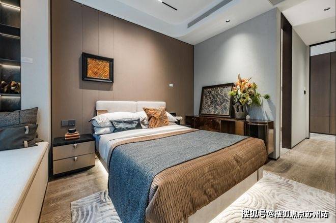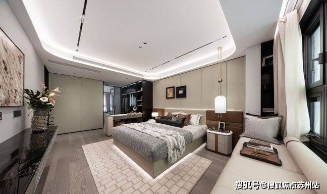 体现在艺术感和品质感。比如,弧形线条贯穿客餐厅、主卧等室内空间,弧形吊顶不仅颜值高,工艺更繁琐,而且更能提升空间比例,从视觉上和心理上让空间显得更加宽敞。
