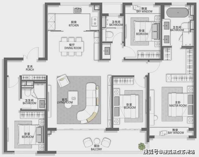而且,所有卧房开间均在3米以上,有独立飘窗。