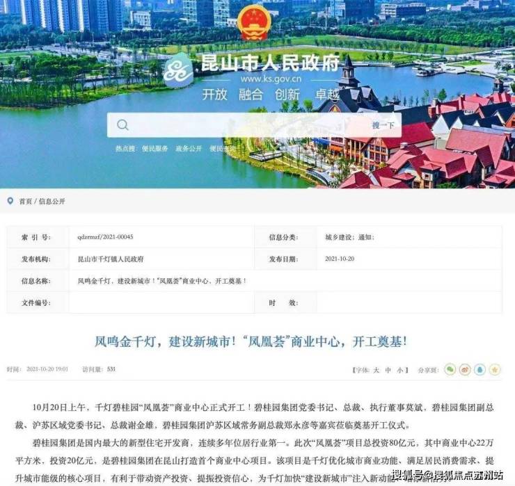 项目自带一个超20万方的商业中心——碧桂园·凤凰荟,由一座139米高的写字楼和一座地上8层地下2层的商场构成,该商业综合体已于2021年10月20日开工。(资讯来源:昆山市人民政府)