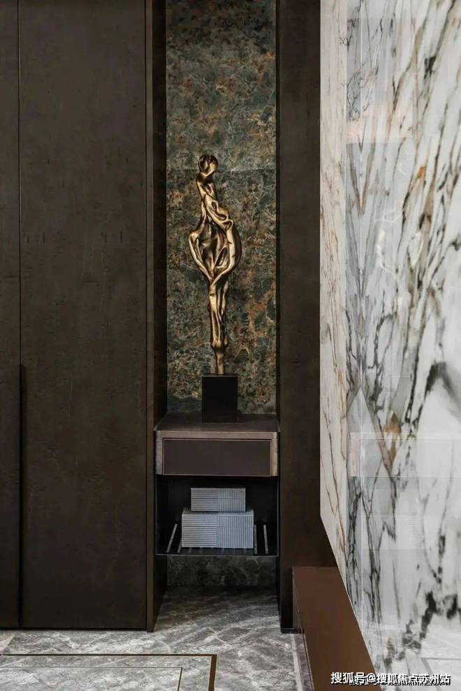 主题墙选用的大岩石,犹如一件天然的艺术品,其清晰的纹理宛如岁月的印记,镌刻出空间的优雅与大度。这面墙不仅是视觉的焦点,更是灵魂的触动,让人在每一次注视中都能感受到那份沉静与深邃。其舒适的质感更是诠释了此处的高贵,仿佛每一寸空间都流淌着贵族的血液,散发出迷人的气息。