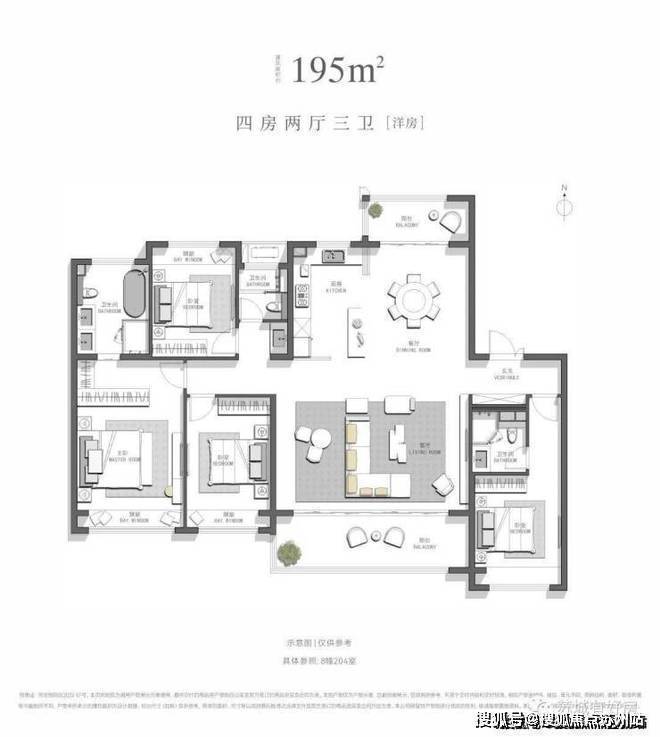 建面约195㎡,四房两厅三卫[洋房]