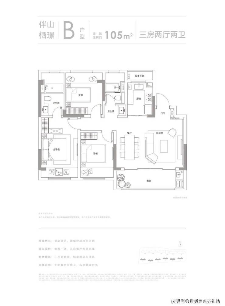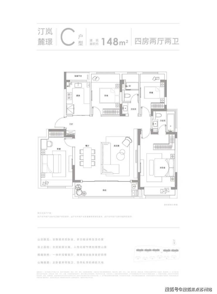 苏州山岚璟庭售楼处电话☎:400-8828-814(售楼处预约看房热线)建筑面积约105㎡、148㎡亲地纯洋房,大面宽,套房式主卧,瞰景阳台,通透明净,理想生活的宽度。