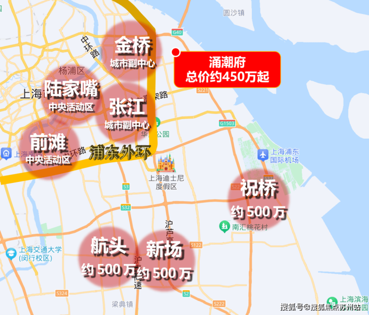 从地图来看,曹路整体地理位置与唐镇、外高桥、周康等板块非常相似,全都位于外环旁,且紧邻金桥、张江等产业高地。