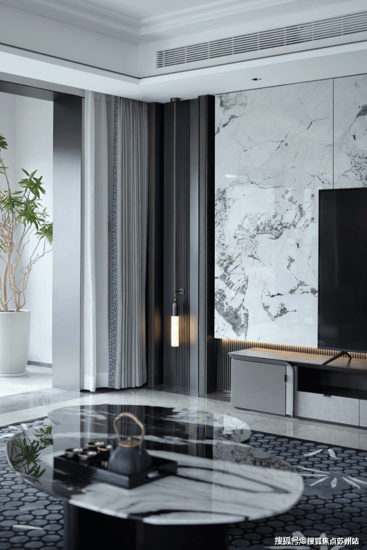 行云流水般的写意构图,遵从文化传统中的虚与实,木质圆桌成为聚会中心,加上现代艺术的精致点缀,极具场景仪式感。