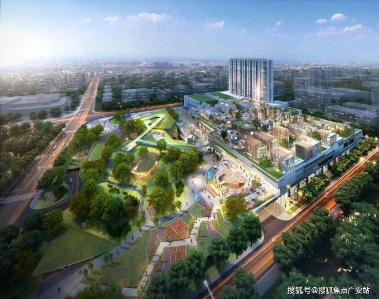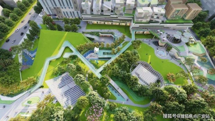 展现出首层聚落-公园绿岭-立体街区