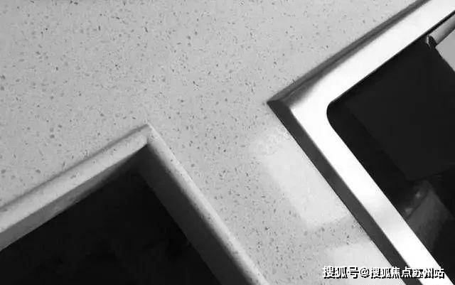 锦绣雅著厨房台面细节设计,挡水条避免了水溅落地面,滴水檐避免了污染柜体,有效减少细菌滋生.