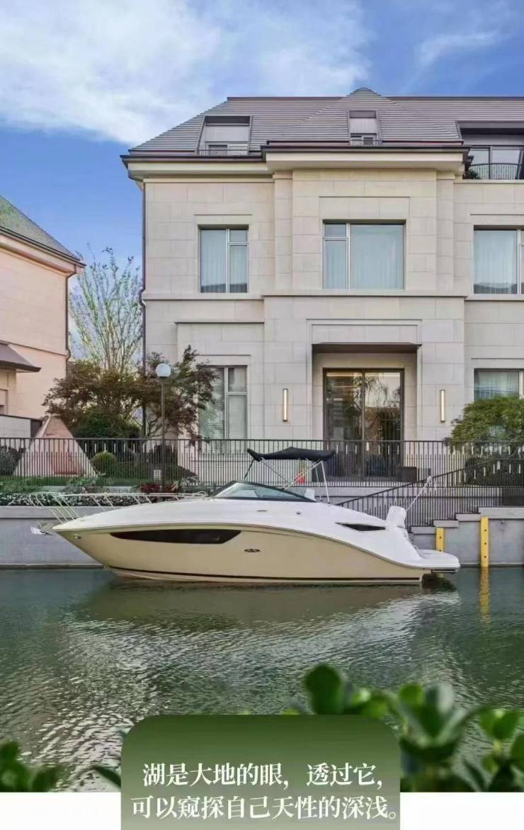 每一排别墅前都有一条渠道,引入水系,可!以!停!游!艇!