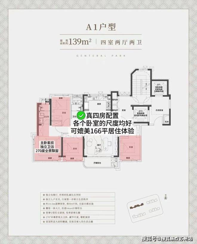 亮点一:经典四开间朝南+大横厅设计,超绝采光户型!