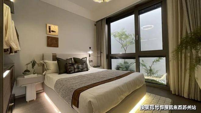 主卧豪华套房,预留衣帽间空间,配备独立卫浴,且配置双台盆+大浴缸,以五星级酒店式的卫浴配置,演绎居家生活的奢享;主卧打造南向大飘窗,配合以转角采光窗,呈现未来轻办公与午后茶饮的最佳空间。