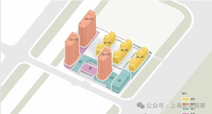 根据公示内容,项目将规划建设3幢3层别墅、3幢13–14层高层商品住宅及1幢3层商业楼,部分高层住宅首层设计为架空空间。整体布局呈现西高东低、前低后高的形态。