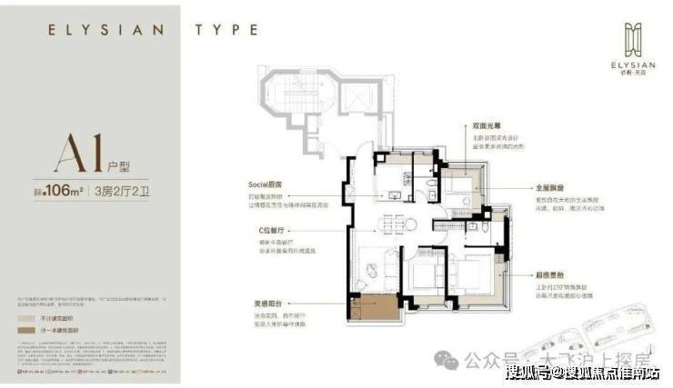 南北两个房间都做到270°飘窗,采光和景观面极其优秀。