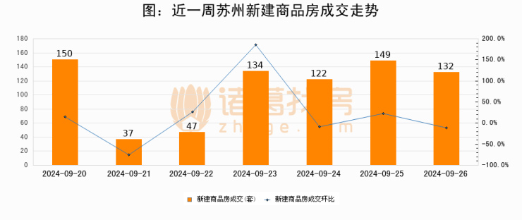 【苏州成交日报】09月26日新房成交132套、二手房238套;涨价房源454套