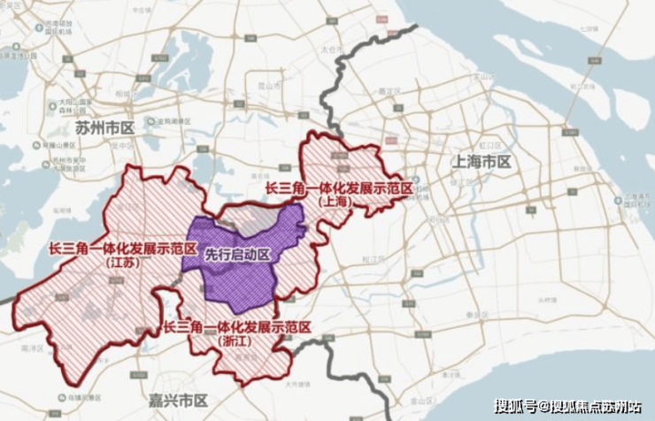 如果再把地图范围扩放大一点,我们可以看到项目所在位置,正处于国家战略长三角一体化先行启动区的核心,而且是核心中的核心。
