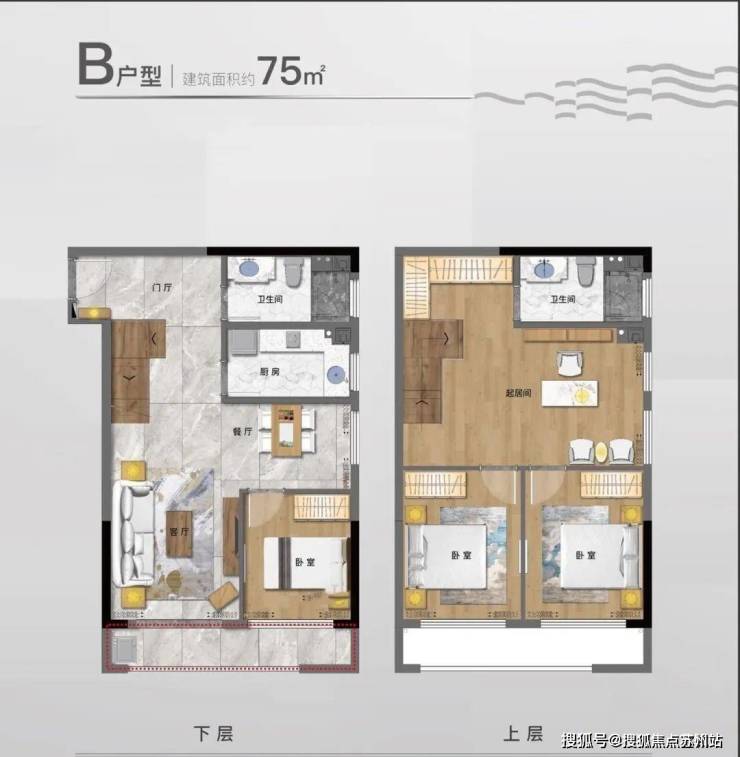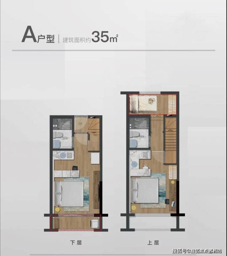 主力户型为4.79米层高的35㎡双钥匙Loft,上下两层可实现独门独户,买一套房用两套,具备多重投资价值。