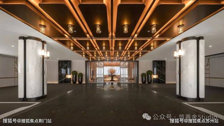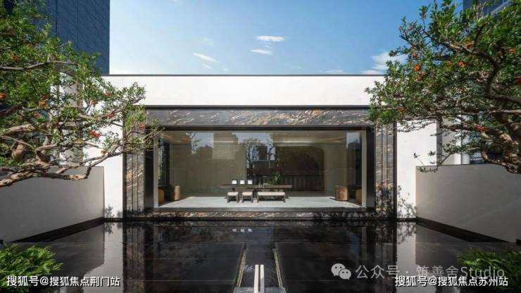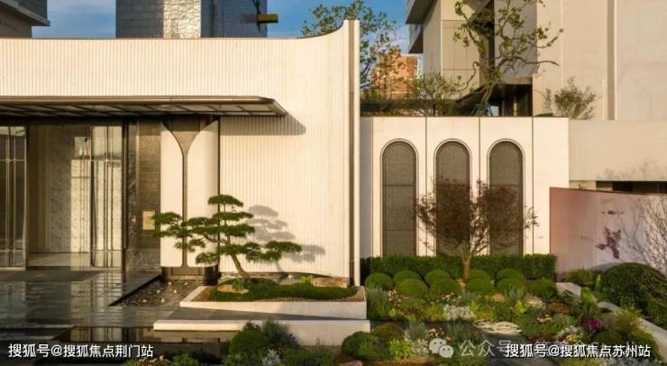 步入此境,眼前即刻展开的是一幅精致的景观水系画卷。流水潺潺,与周围的翠绿植被交相辉映,勾勒出一幅生机勃勃的画面。循水而行,连廊曲折迂回,既为业主提供了避风躲雨的便捷,又营造出一种充满仪式感的回家之路。