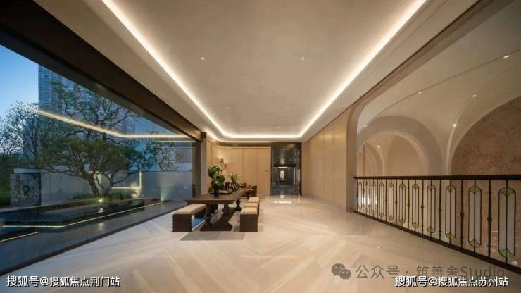 打造7米挑高,简约而不失格调的书吧空间,这个太震撼了。以原木材质勾勒流畅拱形,无华丽修饰,仅用自然之美营造氛围。全景落地窗设计,让阅读与自然无缝融合。在这里,阅读不仅是心灵的滋养,更是生活的艺术。拱形穹顶映照出阅读者的轮廓,窗外,柏坡黄砾石花池环抱的戏水池洋溢着孩童的欢声笑语,冰川蓝马赛克点缀其中,四季更迭,阳光与树木共舞。