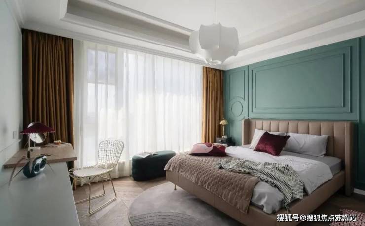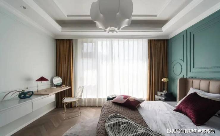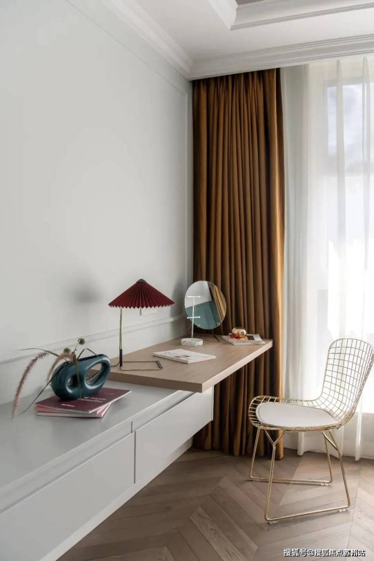 在床尾靠近窗边的黄金位置,精心布置了一个独立的梳妆台,这一设计巧妙地利用了自然光线的优势。早晨,当第一缕阳光轻轻洒落,为梳妆台披上了一层柔和而自然的光辉,让早晨的梳妆时光变得格外温馨与惬意。这样的布局不仅提升了空间的实用性,还营造出一种休闲放松的氛围,让居住者在家中的每一刻都能感受到生活的美好与宁静。