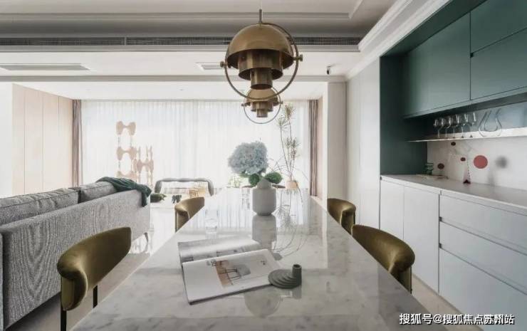 餐桌的选择极具匠心,长达2.2米的尺寸不仅彰显了空间的宽敞与大气,更具备了极高的实用性。它能轻松容纳8至10人同时用餐,无论是家庭聚会还是朋友宴请,都能游刃有余地满足各种用餐需求。而更为巧妙的是,这张餐桌在非用餐时段还能化身为西厨操作台的延伸,为烹饪爱好者提供了额外的操作空间,让烹饪过程更加顺畅高效。
