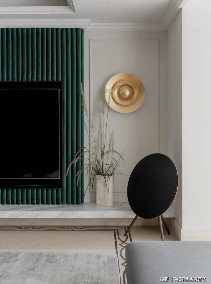 客厅的电视背景墙依据屋主的独特品味,匠心打造了一面采用奢华丝绒材质的L型延伸设计,这一创新不仅巧妙地打破了传统对称布局的拘谨感,更为空间注入了一股柔软而温馨的氛围,让人在观影之余也能感受到一份轻松与惬意。
