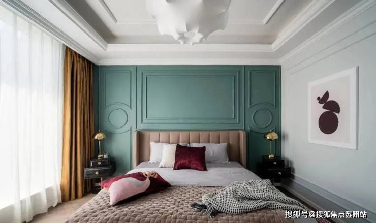 在背景墙的设计上,果断摒弃厚重的装饰,转而采用深绿色系,这一色彩选择不仅为卧室增添了一抹自然与宁静的气息,还与整体家居风格完美融合,展现出一种低调而优雅的品味。