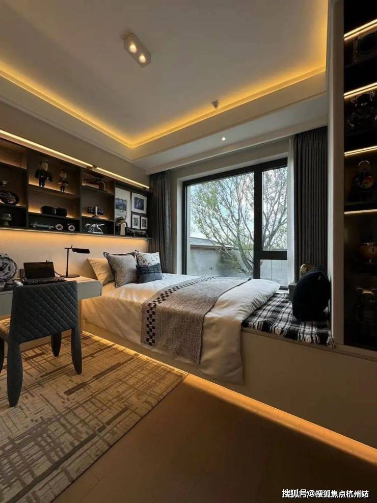 而人行线路则由星级酒店式的入户大堂进入,接着便是6S会所环绕的下沉式水景庭院,约7米高磅礴大气的水景墙配合乌桕林和原石、浮桥交错的地面水景,若是傍晚归家,还能欣赏倒映在水中的点点星光,可谓满满的奢雅意境和尊贵仪式感!