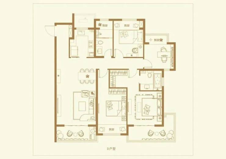 F户型 超大五房/岛台双厨 建筑面积约226㎡/5房2厅2厨3卫