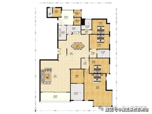 房屋户型:4房2厅3卫双厨+保姆套房