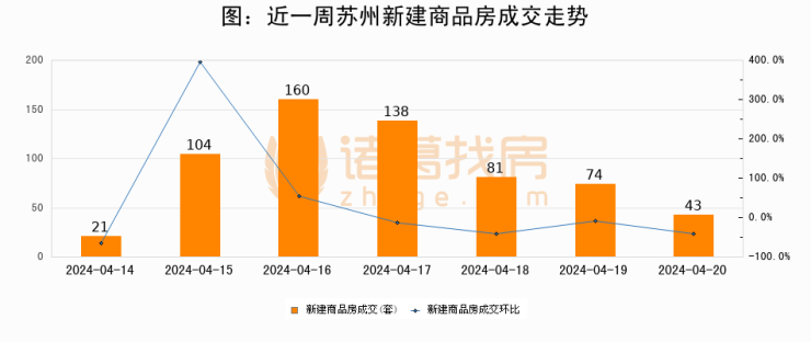 【苏州成交日报】04月20日新房成交43套、二手房22套;涨价房源199套