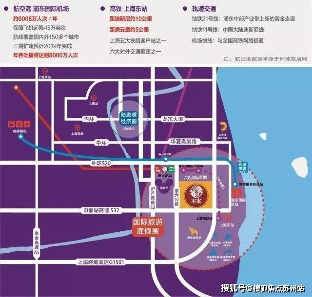 政府铺路,10分钟连中环度假区高架,11号线和21号线直连。上海第五个高铁站,浦东机场T3航站楼扩建成为上海第一大飞机场,直接导入世界各地旅客。