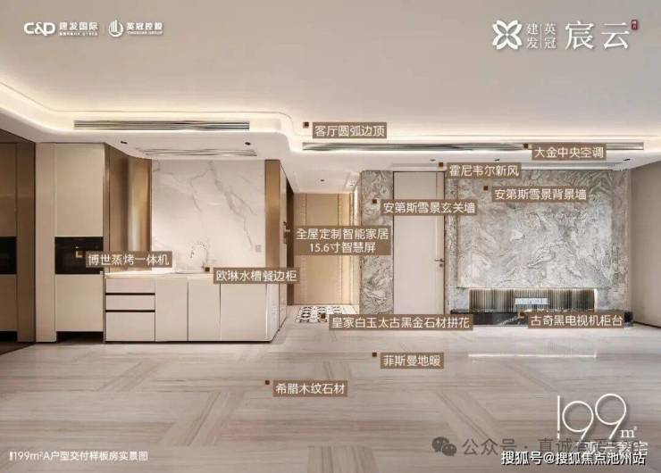 高层199㎡大平层:类一梯一户设计,南向四开间、7.2米跑道式阳台,层高3.15米,打造“空中院墅”概念;精装采用大金中央空调、博世厨电及全屋奢石饰面,实现“博物馆级”居住质感