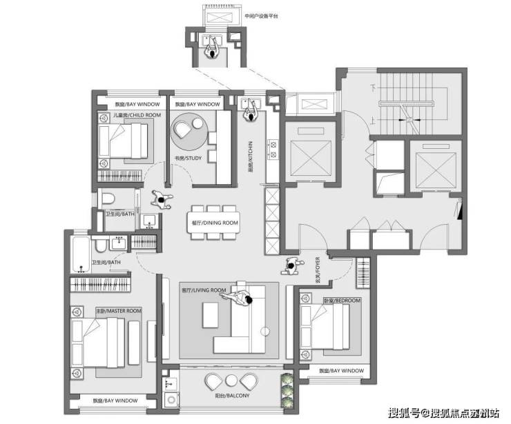 卧室全飘窗设计,分离式布局,自留一方静谧