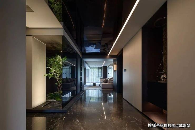 设计师采用【爱力蒙特∙黑金帝国石】地面通铺,独特的浓郁黑色底色,自带无尽视野纹理舞动地闯入,多元文化沉淀的石材,在灯光的映衬下,赋予空间奢雅而高级的气息。推动人与场域建立共鸣与自洽的美好连接。