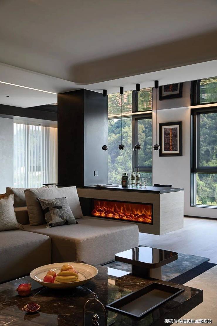 在色彩的海洋中,黑色以其独特的魅力吸引着我们,它深邃、纯粹、低调……大面积的落地窗将视野开阔到极致,别具匠心的现代式壁炉,既带来浓郁的复古感,又不失现代设计的简洁利落。
