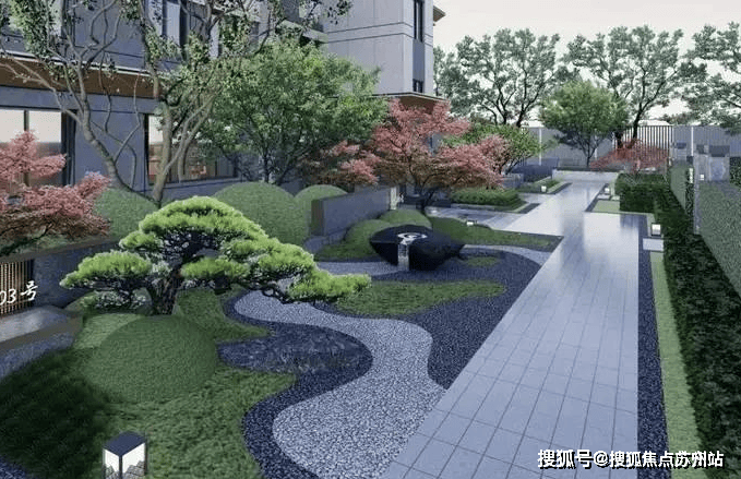 承继东方美学神韵,提炼昆山在地文脉植入,取“山庭”、“曲水”、“松茂”等意向,构建“一轴、三境、五景”园林组团,串联三进制尊崇归家礼序,层层意境,无际延伸