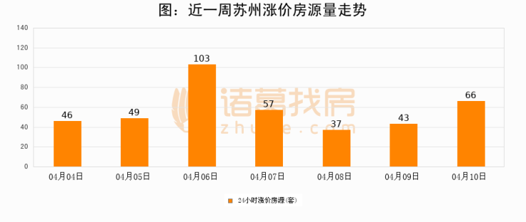 根据诸葛找房数据显示,苏州24小时涨价房源量为66套,较04月09日增加23套,环比上涨53.5%。与此同时,涨价房源占比小幅扩大,业主信心有所提升。