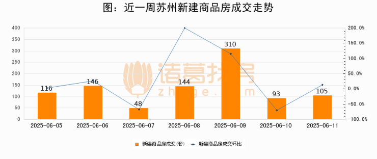 【苏州成交日报】06月11日新房成交105套、二手房302套;涨价房源13套