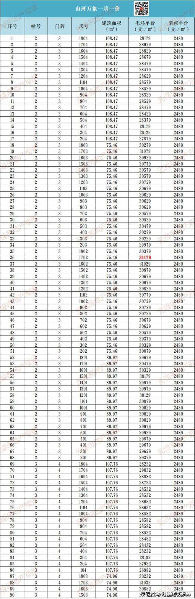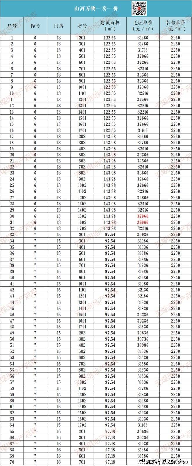 爱情山河万物一房一价表: