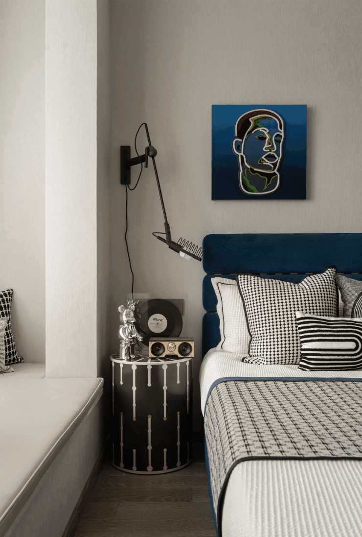 男孩房的设计以音乐主线贯穿整体,不仅体现了男孩的大胆探索,充满活力的特质,也隐喻了释放童年率真之美的愿望。