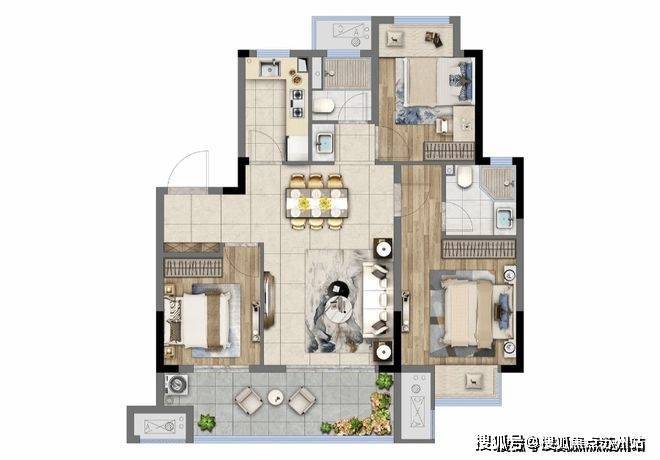 一般来说,建面约100m²以内的户型如果做三房设计的话,都会面临房间小、没有玄关等问题,要么就是少一个卫生间,所以小户型在设计上,更考验房企在设计上平衡舒适性和功能性的能力。