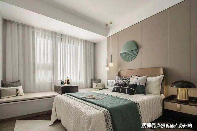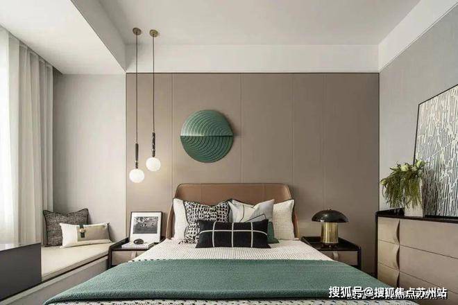 作为空间的重要组成部分,主卧承载着人们每日休憩的私密时光。空间内沉稳低调的咖色与主基调绿色的搭配,无声地表述着雅致的品味,将卧室空间引入静谧安适的氛围之中。