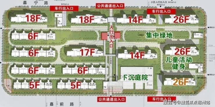根据公示图显示,该项目的4个小板块最高层为项目东南角和西北角的26层高层,共有6栋,高度接近地块限高的80米(77.80米);18层的共有8栋;17层共有6栋;14层共有4栋;13层共有2栋;6层的共有4栋;5层的共有8栋。
