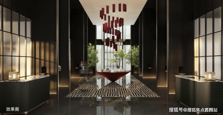 万科·海上映象售楼处电话:400-9696-224,挺拔的外立面、富有秩序感的中轴、高定符号点缀的艺术大堂,为业主标记出一条尊贵的归家之路。