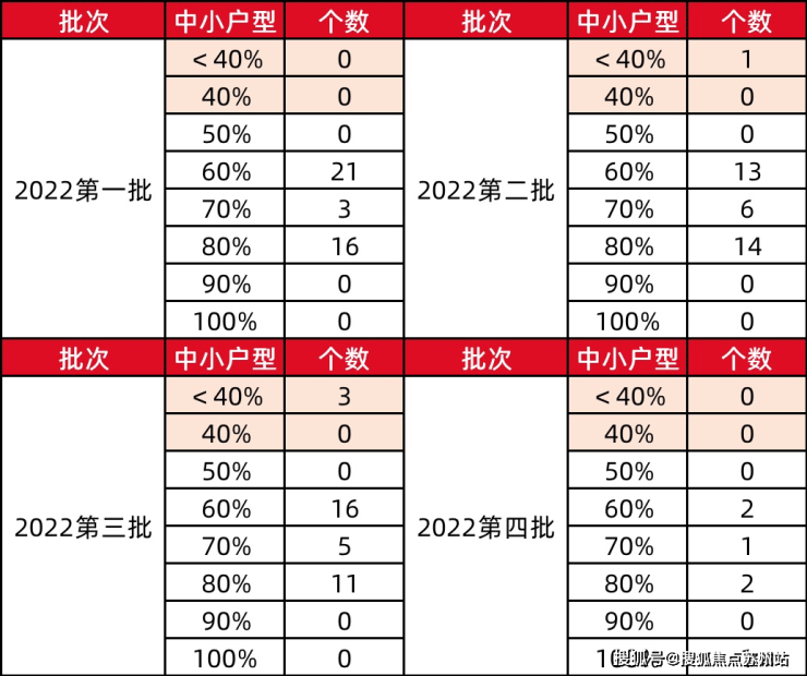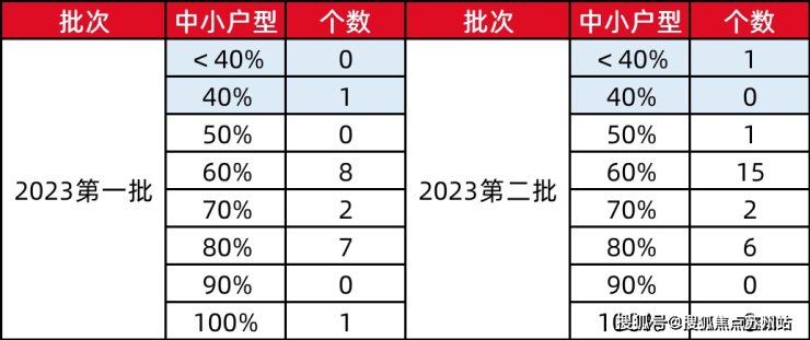 从2022-2023年土拍中小户型供应结构可以看出,中小户型占比从约80%慢慢转为约60%,但也仅限于此了。如万科·海上映象一般仅有约40%中小户型的项目,从去年到今年,加起来都不到10个。