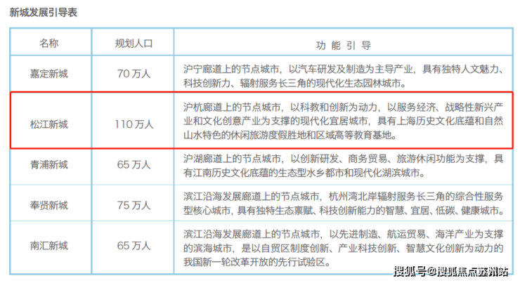 2、松江新城自身规划的人口以及人才储备(大学城)
