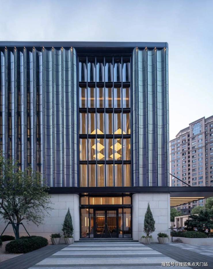 来到项目会所,就被其流光幻彩铝板的外立面所吸引。不同角度有不同颜色呈现,造价昂贵。大堂的玻璃也很吸睛,用的半钢化夹胶反弯弧玻璃,半径仅为约600mm,施工难度大、成本高!