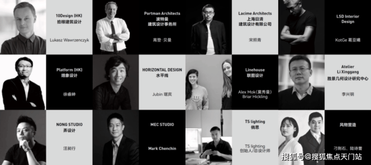 包括外滩华尔道夫酒店的缔造者波特曼建筑设计事务所、来自中国香港的先锋设计机构10Design和Platform,参与设计上海新天地的日清建筑设计,擅长室内空间设计的LSDInteriorDesign、水平线、Linehouse、NONGSTUDIO以及设计外滩建筑群灯光照明的TSlighting等。