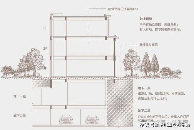 300-1500㎡独立户型空间,可分可合;户户私享独立花园,有天有地,自在办公;地下一层3.5——5.1m,户均有效使用率高达163% ;