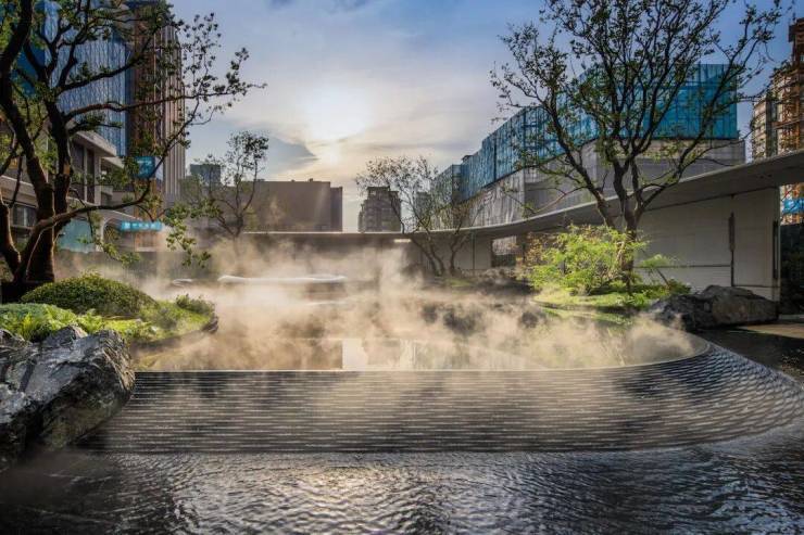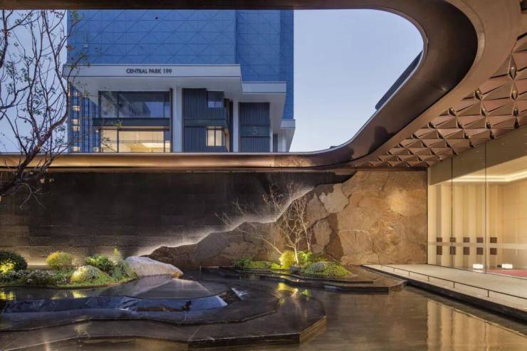 打造多重立体景观,构建悬瀑石涧的城市山林,结合多维的城市立体化空间,纳尽东方风雅逸趣。
