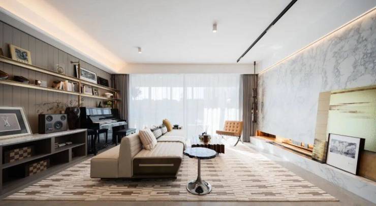 约117㎡藏峯户型:拥有奢阔的横厅设计,空间感十足,像酒店套房一样舒适,满足了对大户型空间感的追求。
