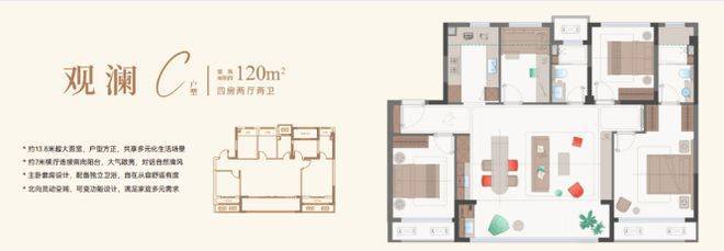 户型创新:起步户型98㎡,采用“一步阳台+凸窗”设计,洋房120㎡户型可实现四房两卫+7米大横厅,空间利用率高。